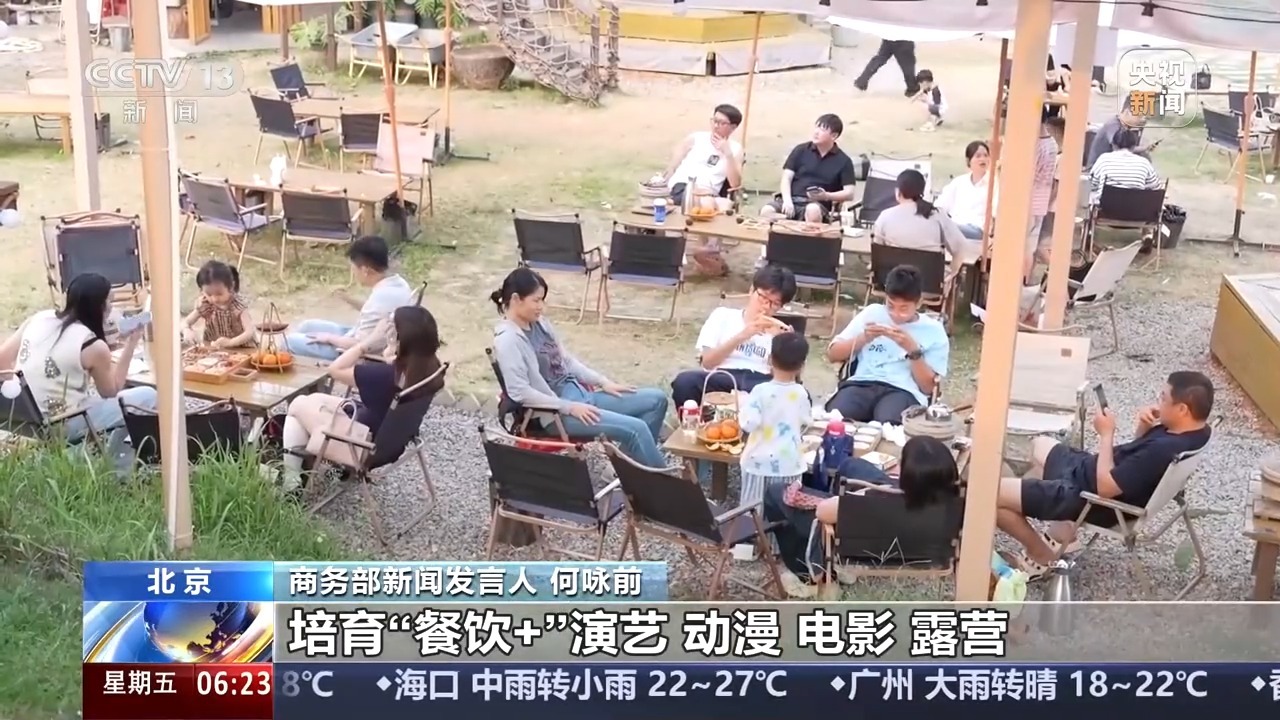 商务部新闻发言人 何咏前:创新多元消费场景。推出非遗美食等主题美食旅游线路,培育“餐饮+”演艺、动漫、电影、露营、旅游列车等新型业态,打造沉浸式消费场景。